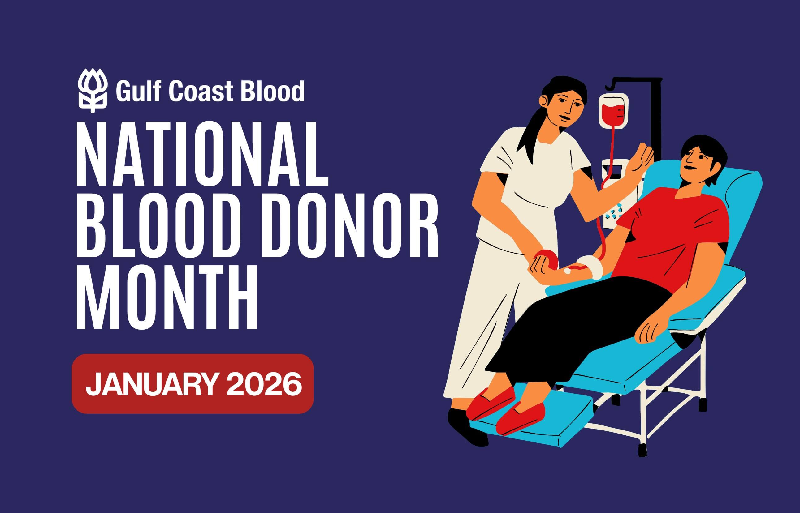 January is National Blood Donor Month (NBDM), and Gulf Coast Regional Blood Center is celebrating the incredible impact blood donors have on our community. NBDM honors the generosity of voluntary blood donors and encourages more people to give blood. This year is especially meaningful as Gulf Coast Regional Blood Center marks its 50th anniversary of serving the community— a journey made possible by the dedication and generosity of selfless donors who give to help others.