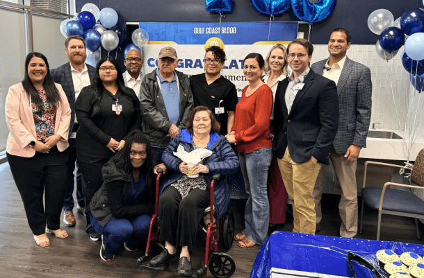 “Edward Commender represents the very best of our donor community,” said Kevin Shipley, Associate Vice President of Community Engagement at Gulf Coast Blood. “His generosity, consistency, and compassion have helped save thousands of lives. We’re incredibly grateful for his commitment and proud to honor him as a true community hero.” To commemorate the milestone, Mr. Commender was recognized by Gulf Coast Blood staff and presented with a 100-gallon milestone mug, along with a recognition letter from Gulf Coast Blood President and CEO Nikhil Nayak. Staff members gathered to celebrate his dedication and to thank him for the profound impact he has made on countless families and hospital patients.