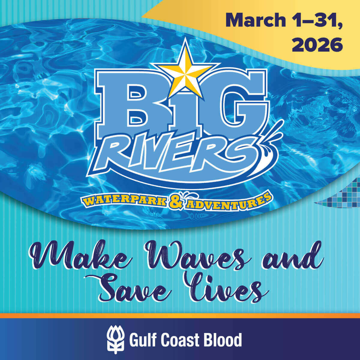 Donate blood and enjoy a day of adventure at Big Rivers Waterpark & Adventures. Everyone who gives March 1–31, 2026, will receive a free admission ticket as a thank-you for supporting local patients.