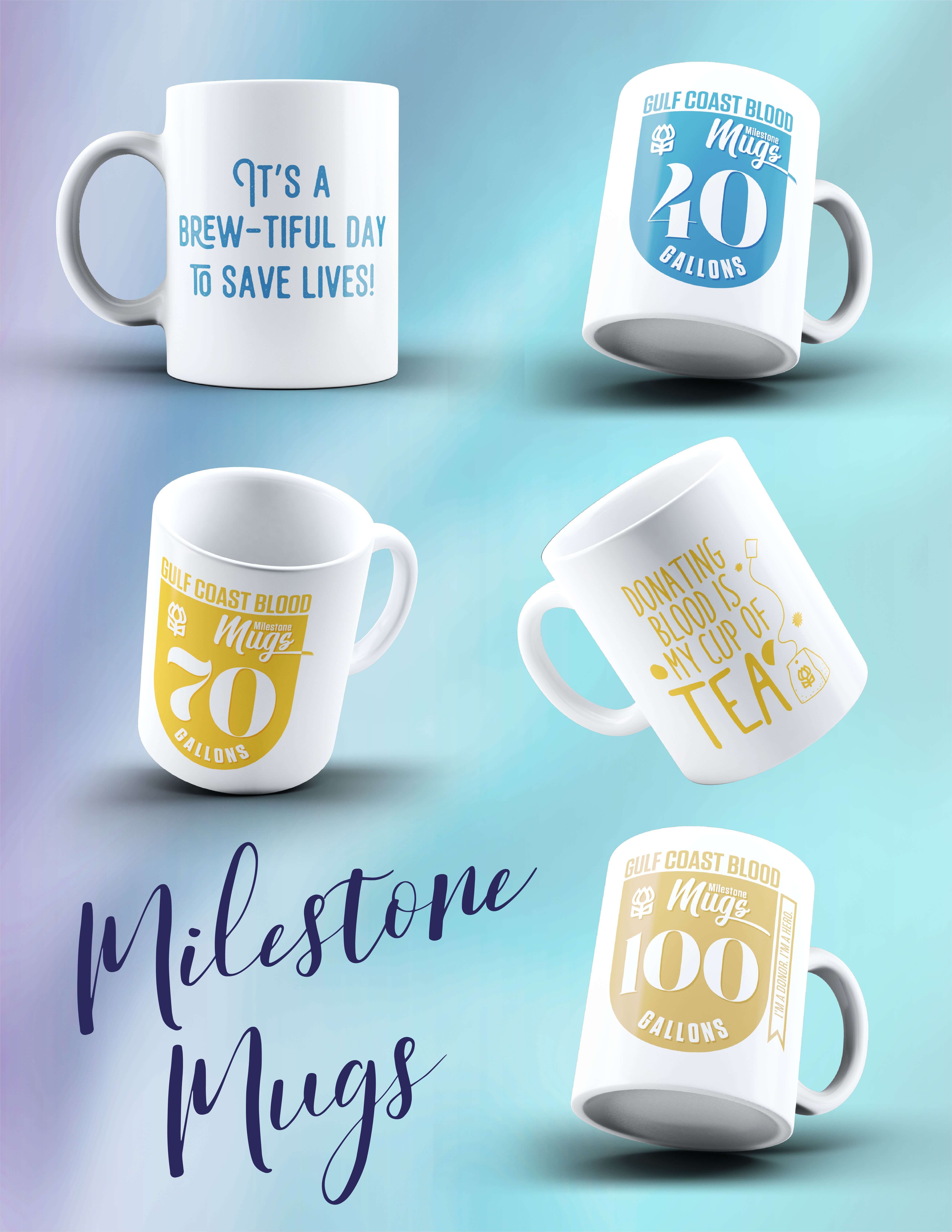 As you reach donation milestones at 1, 5, 10, 15, and 20 gallons, you'll earn exclusive mugs to celebrate your contributions. And for the highly dedicated donors, every 10 gallons after your 20th, earn another unique mug!