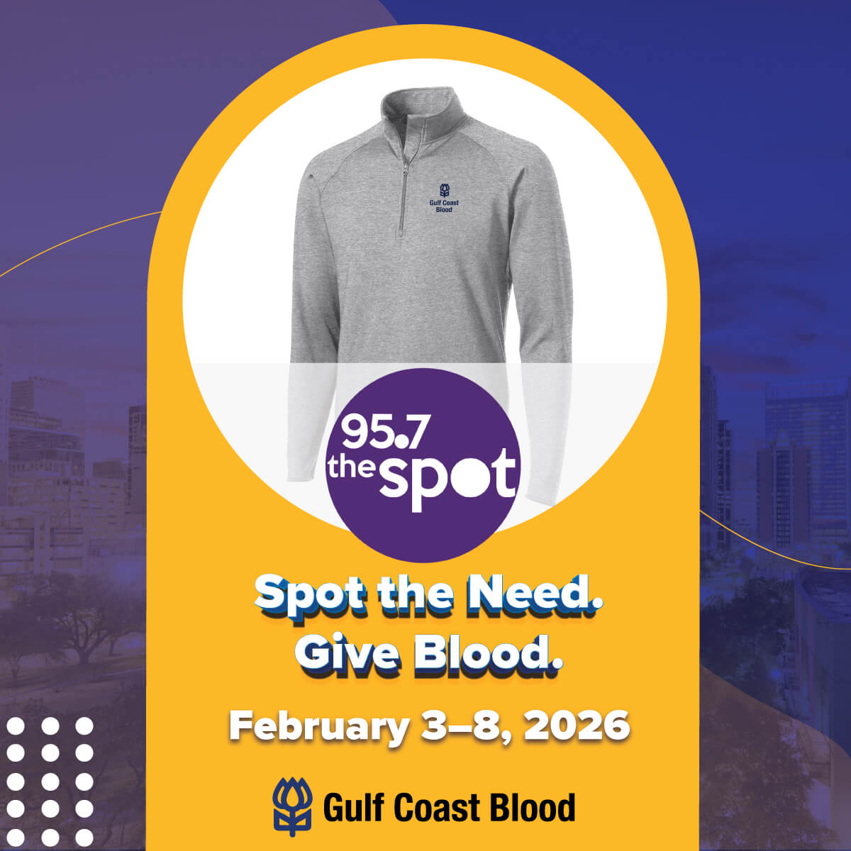 Join us for The Spot Media Drive, happening February 3–8, 2026, across the Greater Houston area! This special media-driven campaign is your chance to help save lives while receiving a Gulf Coast Blood quarter zip pullover as a thank-you, available while supplies last.